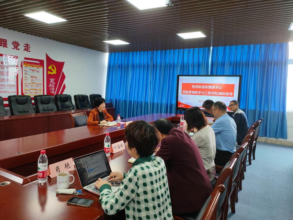 5月26日下午,校党委副书记宋豫到管理科学与工程学院调研指导工作。管科科学与工程学院班子成员、专职组织员、系主任、党支部书记、科研平台负责人、民主党派代表以及宋豫副书记联系的专家等参加了本次调研会。管理科学与工程学院党委书记邓德敏汇报了党建、专业建设、学科及平台、学生工作、招生就业等方面情况。管理科学与工程学院其他班子成员结合工作进行了补充,参会老师就支部建设、职工子女入学、科研管理等问题纷纷提出...