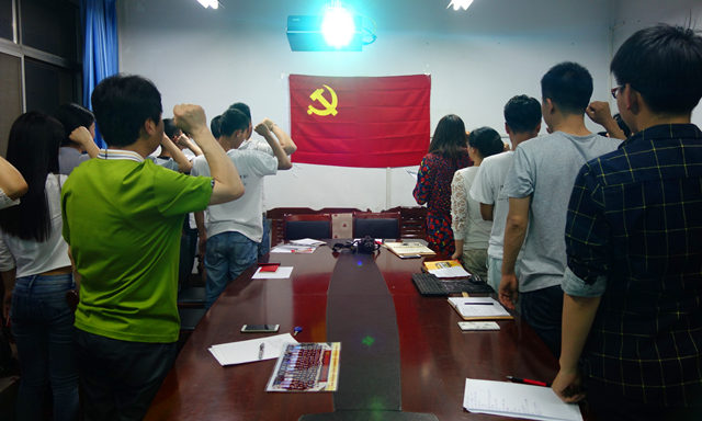 会后,党委负责人向毕业生党员赠予了党章党徽作为留念,并与大家一起重温了入党誓词。