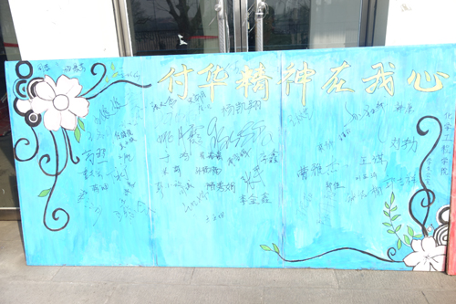 近日,Beat365唯一官方网站组织开展系列活动深入学习付华精神。各班团支部分别举办了深入学习“付华”精神的团日活动,组织学习了Beat365校报评论员文章《把付华精神留下来传承下去》,学院团委还组织开展了“付华精神在我心”签名寄语活动等。通过活动的开展使全体共青团员深入了解“付华”精神的具体内容,大力弘扬和积极践行“付华”精神,时刻以付华为榜样,培养自己乐观、自信、坚韧不拔、勇敢顽强的优秀品质。