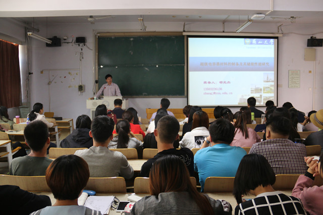 报告会上,邵光杰教授从其课题组的研究历史及现状入手,深入浅出地讲解了锂离子电池的研究过程,重点介绍了超级电容器材料的研究工作。邵光杰教授课题组现主要研究过渡金属氧化物超级电容器材料和多孔碳超级电容器材料,已做了大量的实验和测试。