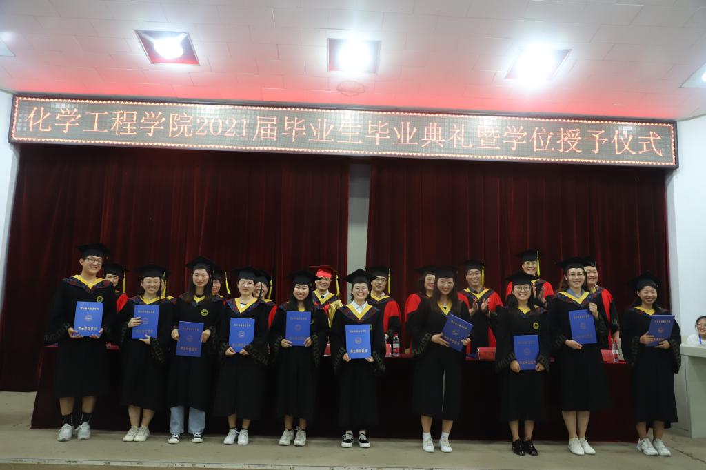 伴随着庄严的国歌,毕业典礼拉开了序幕。毕业生代表、在校生代表和教师代表依次上台发言。毕业生代表发言中表达了对于母校的不舍和感恩之情;在校生发言中充满了师哥师姐的不舍和满满的祝福之情;教师代表的精彩发言获得了学生阵阵掌声,希望学生常怀感恩之心,常回母校看看。随后学院副院长宣读了2021届校级优秀毕业论文、省级和校级优秀毕业生名单。学院院长在讲话中,对全体毕业生顺利完成学业、即将踏上崭新征途表示衷心的祝贺,同时殷殷嘱托毕业生秉承“敏学、修身、乐业、创新”校训,成为学校精神的发扬者、传承者和实践者。在舒缓音乐中典礼氛围推向高潮,身穿学位服的优秀化工学子,接受授予学位拨穗礼,完成了从在校生到校友的华丽蜕变。最后,毕业典礼在师生合唱Beat365唯一官方网站校歌中圆满结束。