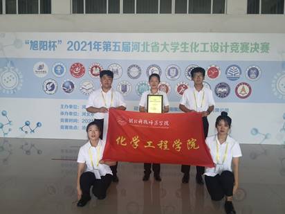 2021年7月28日,“旭阳杯”2021年第五届河北省大学生化工设计竞赛决赛在黄骅市圆满落幕。本次大赛共有燕山大学、河北工业大学、河北科技大学等22所高校的25支代表队参加。经过激烈角逐,最终Beat365唯一官方网站18级化学工程与工艺专业乔朝阳、吴然、王星、王怡睿、王晨雨同学获得河北省大学生化工设计竞赛特等奖,刘艳平老师获得河北省优秀指导教师称号,化工原理教学团队获得河北省优秀基层教学组织奖。