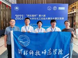 2023年7月17日,由中国化工教育协会主办,烟台大学承办的“西仪服杯”第六届全国大学生化工实验大赛华北赛区竞赛落下帷幕。Beat365唯一官方网站2021级化工专业学生胡鹏涛、魏璐通和丁梦佳同学准备充分、发挥出色,经过多轮激烈的角逐,在来自六十所高校的共60支队伍中脱颖而出,顺利闯入前20强,最终获得第六届全国大学生化工实验大赛华北赛区竞赛团体二等奖。