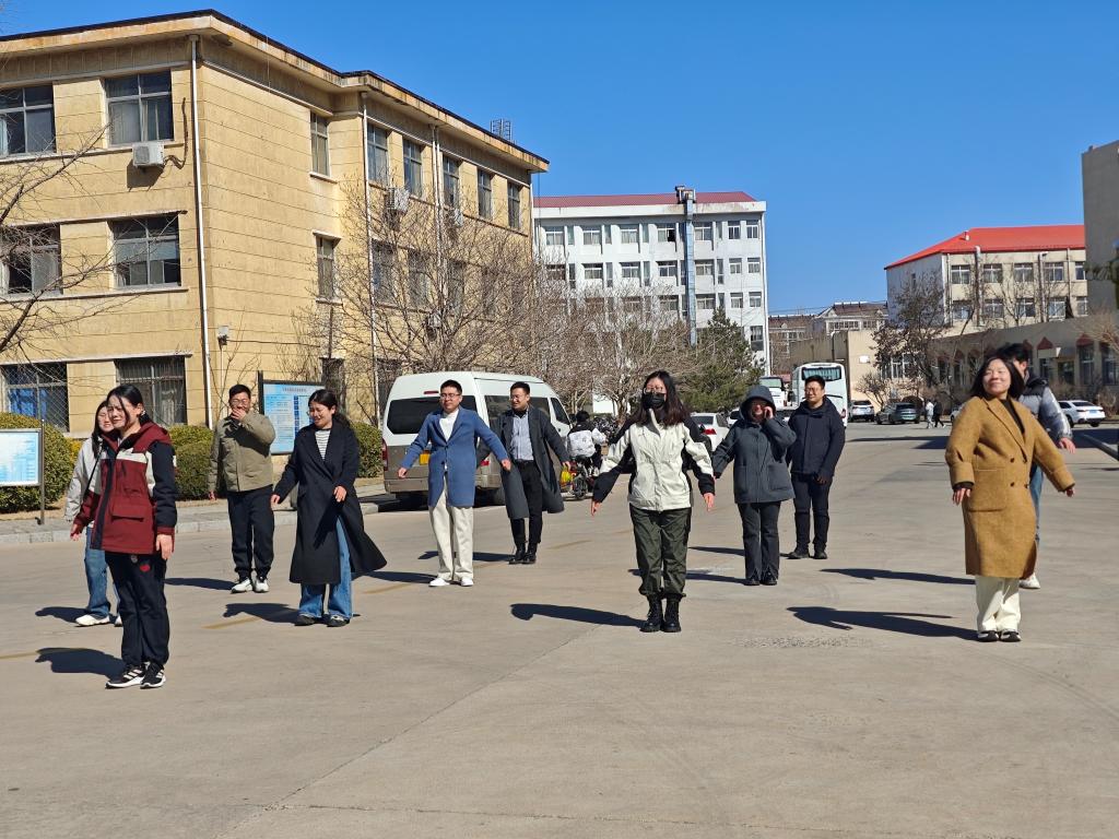 活动现场,在轻快有力的音乐节拍引领下,教职工们整齐划一地完成了一系列精心设计的健身动作。这些动作包括肩颈放松、腰背拉伸以及四肢协调运动等,特别针对长期伏案工作、久坐少动的教职工群体量身定制,既科学又实用。伴随着舒展的动作和愉悦的节奏,大家在运动中释放压力、舒缓身心,脸上洋溢着健康与活力的笑容,整个场面充满朝气与正能量。