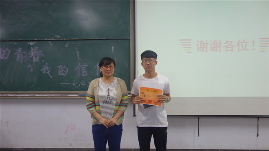 本次比赛中每个选手各具特色,或激情高亢,或低沉颂吟,富有感染力的神态动作和语言表达获得观众的阵阵掌声。经过激烈的角逐,16应化杨嘉峰获得一等奖;16应化孙德、16化学肇金爽获得二等奖;16应化贺静、16化学李欢欢、15应化郝学哲获得三等奖。