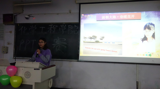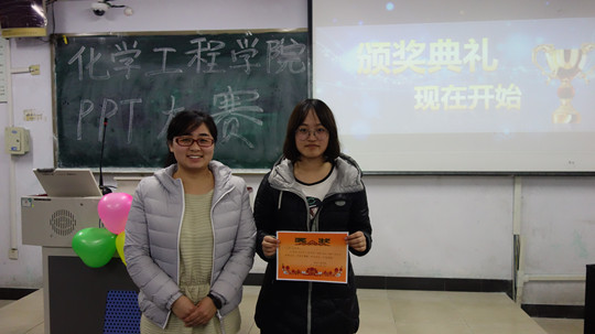PPT设计新颖别致,体现了技术与审美的完善结合,展现着大学生活的一幕幕场景,回味与留恋着大学生活点点滴滴,憧憬和期待着未来的大学生活。最终15应化赵斯文荣获一等奖,15化学孙梅洁获得二等奖,16化学徐铭阳获得三等奖。
