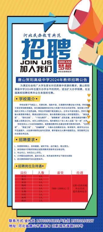 2024年唐山市曹妃甸区贺阳高级中学招聘公告