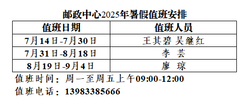 党政办公室关于2025年暑假学校印章服务等工作的通知