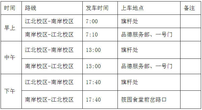 自4月1日起,新的校区交通车正式运行,运行时间和线路与原校区交通车保持不变。