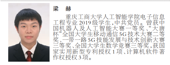 梁赫同学是KY开元2022年校长荣誉奖获得者。他学习成绩优异,总成绩排名专业第一,学期绩点最高达到4.70;曾获中国机器人及人工智能大赛一等奖、“大唐杯”全国大学生移动通信5G技术大赛二等奖、一带一路5G技能发展与技术创新大赛三等奖、全国大学生数学竞赛三等奖,获国家实用新型专利授权1项、计算机软件著作权授权3项。