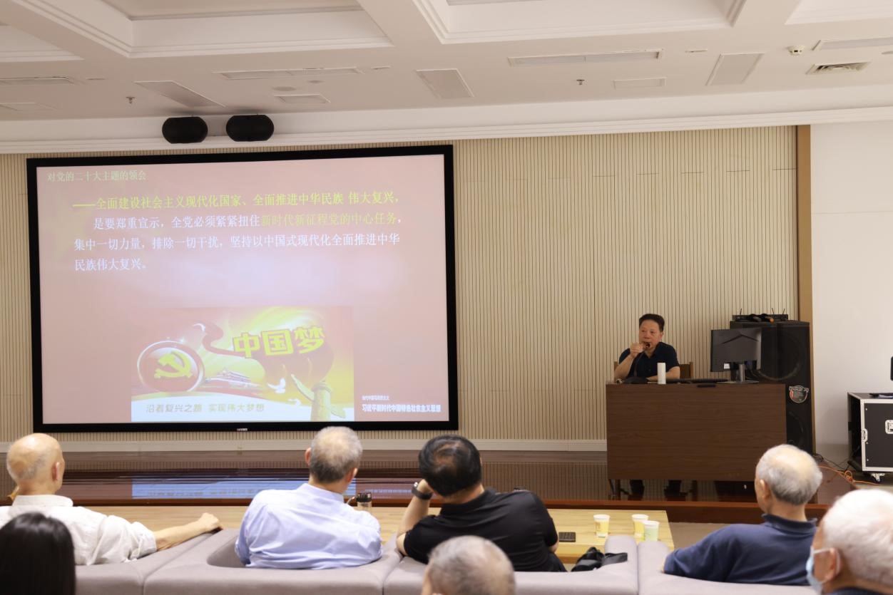 周希贤以“深入学习贯彻党的二十大精神,扎实抓好主题教育,为奋进新征程凝心聚力”为题,提出要从“时代”“使命”和“抓手”三个方面深入学习领会党的二十大精神和习近平新时代中国特色社会主义思想主题教育的重大意义。他指出,中国共产党第二十次全国代表大会是一次高举旗帜、凝聚力量、团结奋进的具有重大意义的大会。学习贯彻习近平新时代中国特色社会主义思想主题教育是党的二十大提出的重要任务,是一件事关全局的大事,是把党的二十大擘画的宏伟蓝图变为现实的有力举措。周希贤紧扣党的二十大报告原文,围绕党的二十大主题、主要成果,过去5年的工作和新时代10年的伟大变革,全面建设社会主义现代化国家的目标任务,坚持习近平新时代中国特色社会主义思想的指导,以中国式现代化建设社会主义强国、推进中华民族伟大复兴等方面,对党的二十大精神进行了全面系统深入的宣讲解读。