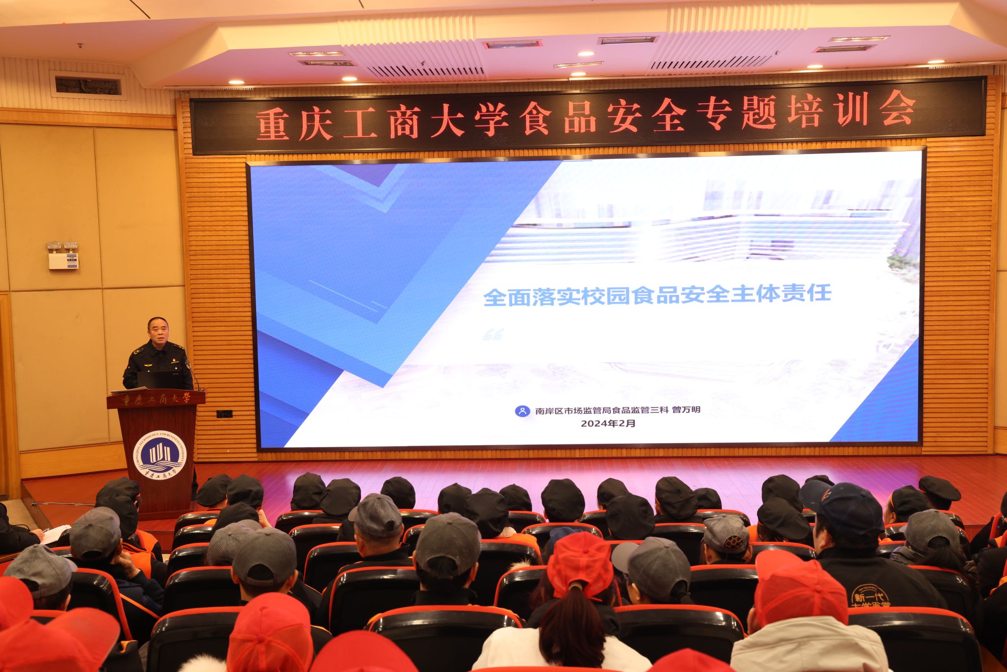 2月22日,学校在博智楼7200报告厅召开KY开元集团官网食品安全专题培训会。党委常委、副校长张波,后勤处负责人、饮食科相关人员,各食堂经理(店长)、厨师长,库管、食品安全员、各班组长等260余人参加培训。重庆市南岸区市场监督管理局曾万明科长等三人参加培训会。会议由后勤处副处长杜元林主持。