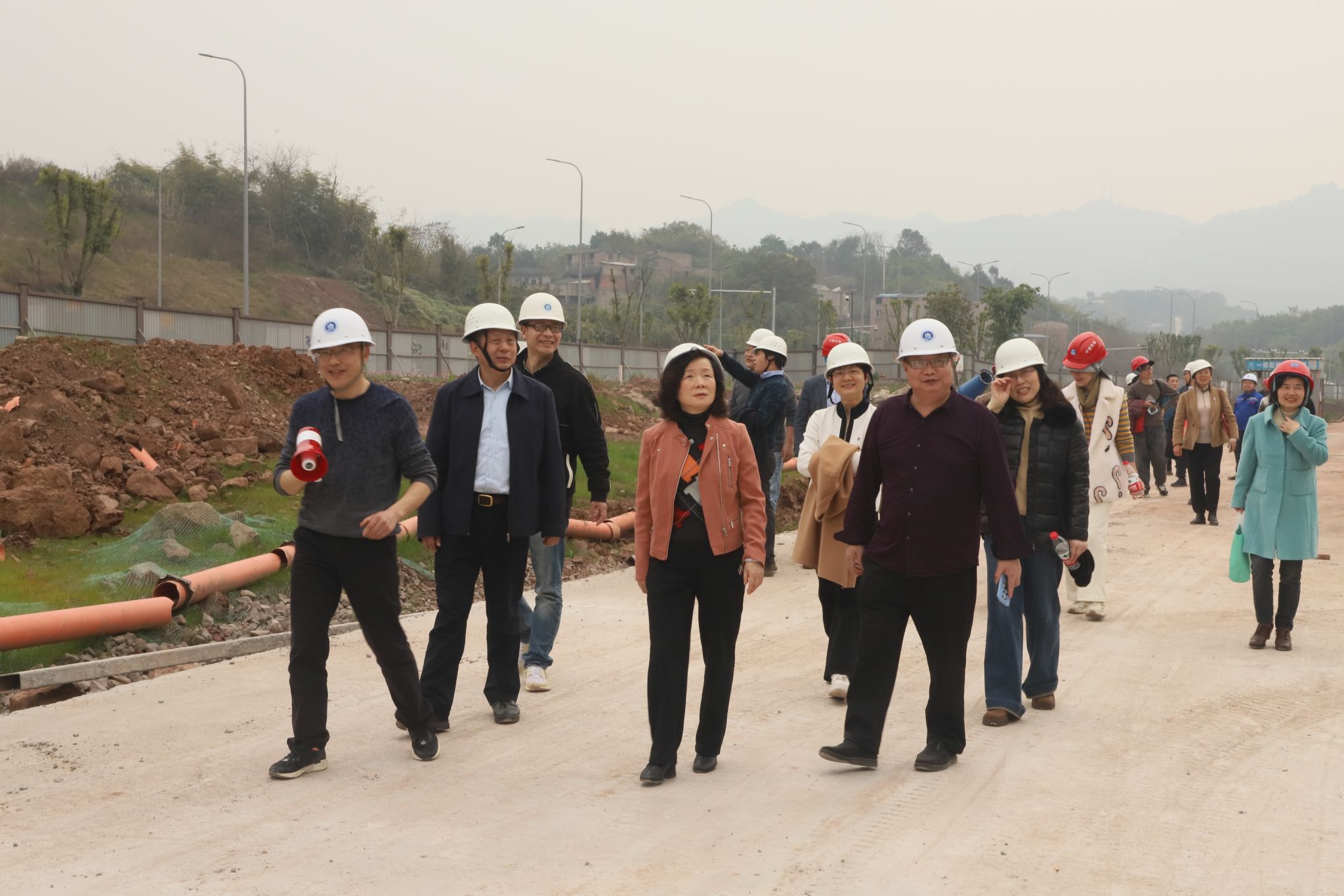 3月14日下午,KY开元组织第四届教代会部分代表前往茶园校区开展重点工程巡视活动,校党委副书记、教代会主任、工会主席宋豫参加巡视活动,在新校区建设指挥部办公室主任李长兴的陪同下,代表们对茶园校区的重点工程进行了实地考察。他们仔细查看了施工现场,直观地了解了工程建设的整体规划、进展情况。