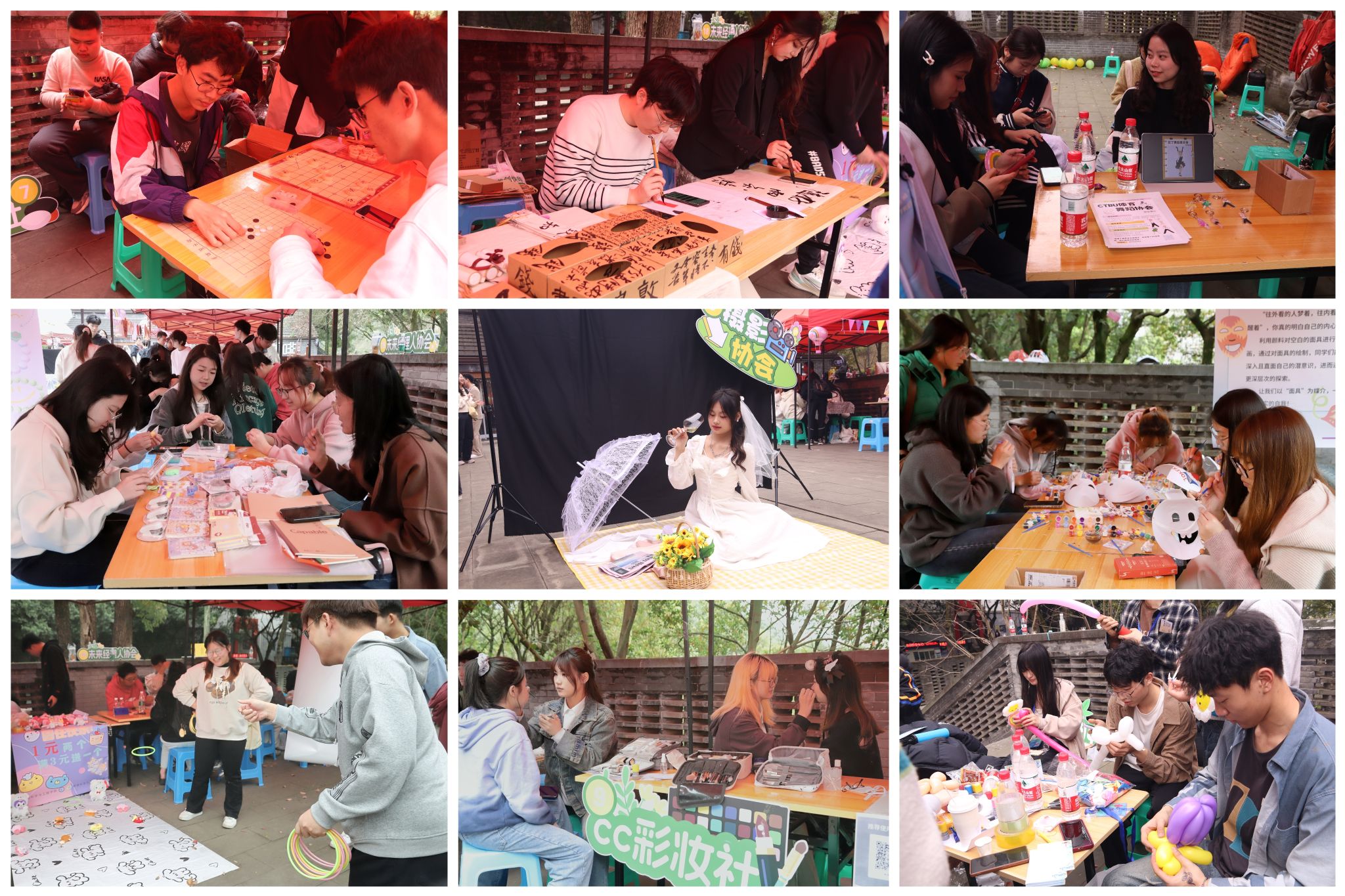 在学生社团创意集市摊位上,同样精彩纷呈。乒乓球协会组织“对对接”的运动游戏,努力锻炼参与同学的专注力和协调能力;茗香沐语茶社通过介绍茶叶种类,普及源远流长的茶文化;社会工作者协会通过知识问答传播“奉献、友爱、互助、进步”的志愿精神;翰轩棋社以棋会友,设置益智棋局挑战赛,开展脑力大比拼;机械师协会展位上,一辆自制的车辆模型,通过智能遥控,车辆可实现前行、倒退、转弯等操作,吸引了不少同学围观。重工商大青年用饱满的热情各展所长,吸引更多的同学参与到丰富多彩的社团活动中来,为校园增加生机活力。