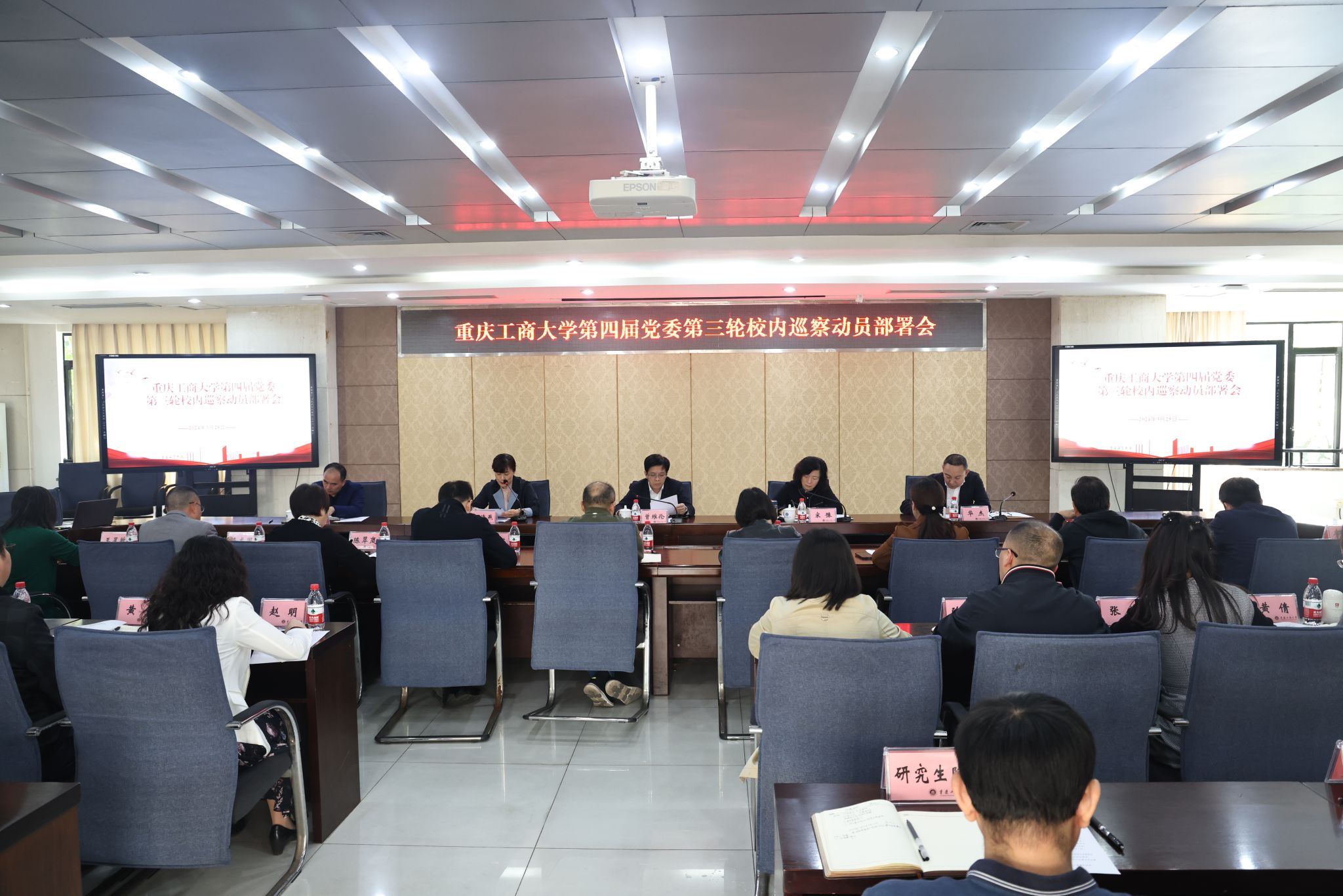 3月25日,学校召开第四届党委第三轮校内巡察动员部署会。学校党委书记、巡察工作领导小组组长曾维伦出席会议并做动员讲话,党委副书记、巡察工作领导小组副组长宋豫主持会议并宣布巡察组组长授权任职及任务分工决定,党委常委、纪委书记、监察专员、巡察工作领导小组副组长张海燕传达学习新修订的《中国共产党巡视工作条例》以及市委书记袁家军在听取六届市委第三轮巡视综合情况汇报时的讲话精神。本轮巡察组全体成员,被巡察单位党政主要负责人,党政办公室(党委巡察办公室)、纪检监察室、党委组织部、党委宣传部、党委统战部,党委学生工作部、党委教师工作部、人事处、教务处、科研处、研究生院、财务处、审计处等部门负责人以及重庆和勤会计师事务所工作人员参加会议。