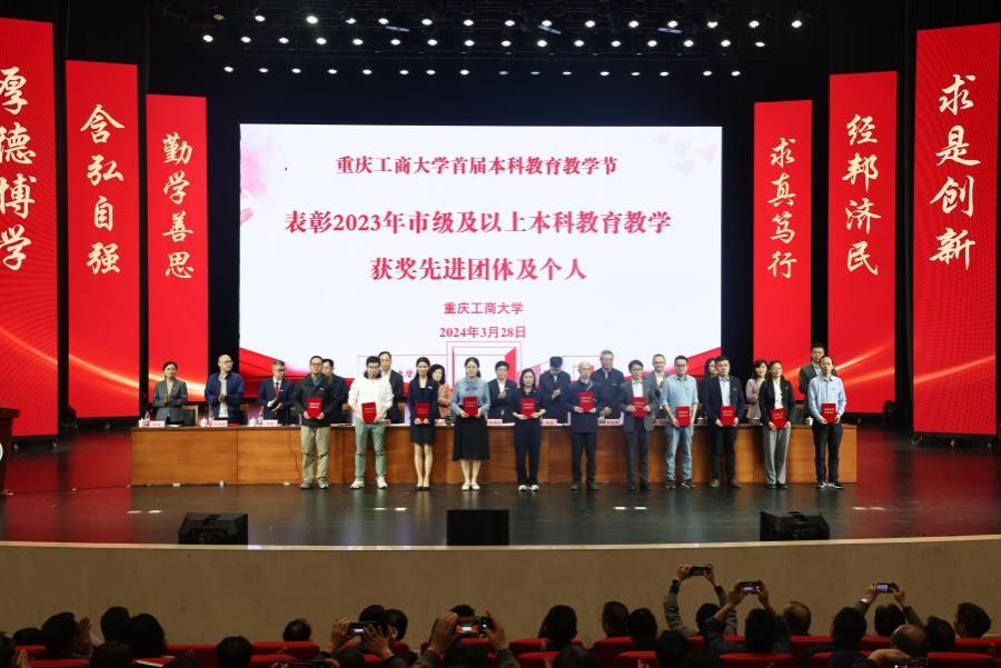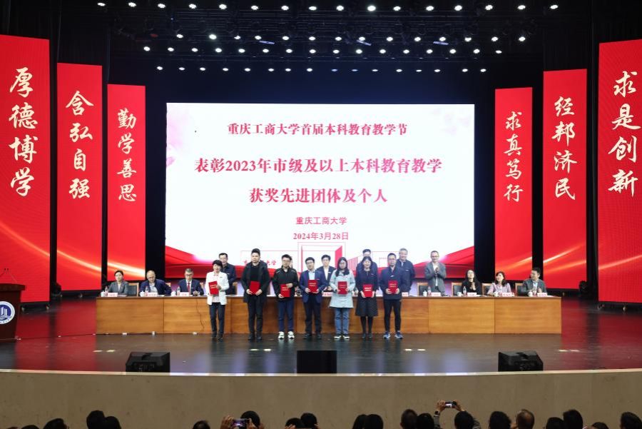大会对2023年获得市级及以上本科教育教学获奖先进集体及个人代表进行表彰。大会表彰了《区域经济学》《零售学》《财务管理学》《人力资源管理》《旅游学概论(全英文)》《管理会计学》等6门国家级一流课程;获得第3届全国高校教师教学创新大赛的教师团队;获批市级一流课程的24门课程建设团队;获批市级重点建设教材的7本教材编写团队;获得重庆市高校教师教学创新大赛的11个教学团队;获得重庆市本科高校微课比赛奖励的5个教学团队;获得市级优秀基层教学组织典型案例的2个团队。