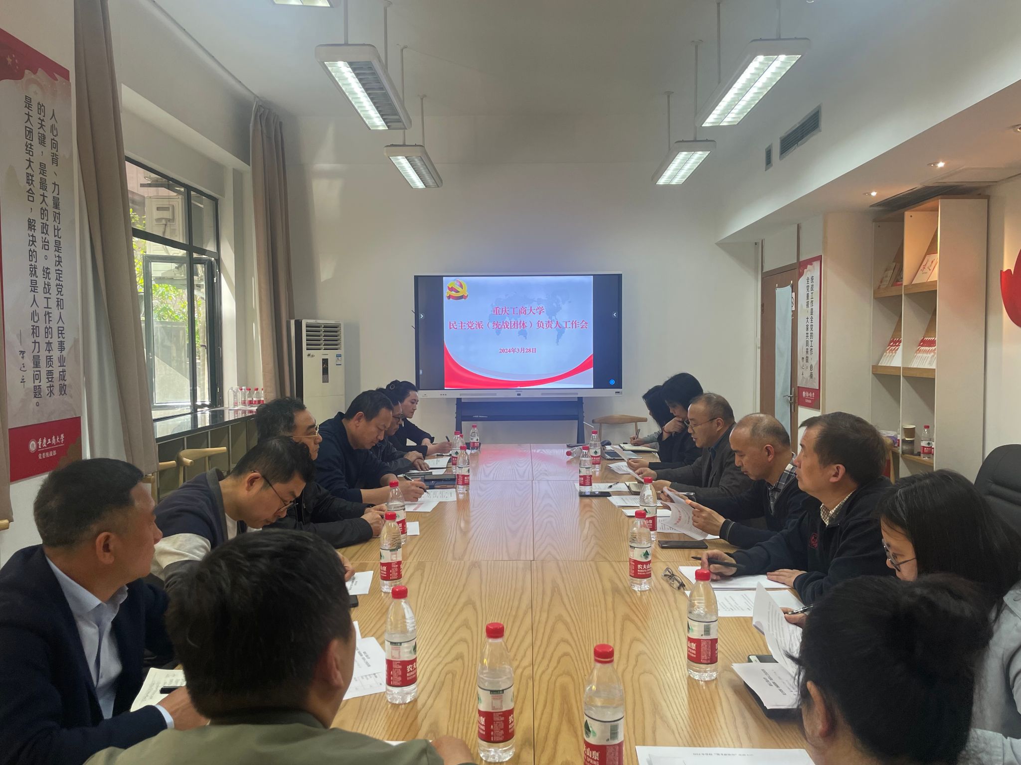 最后,陈松指出,2024年是新中国成立75周年,是中国共产党领导的多党合作和政治协商制度确立75周年,是实现“十四五”规划目标任务的关键一年,是现代化新重庆建设从全面部署到纵深推进的重要一年,也是全市统一战线守正创新、攻坚突破的一年。学校的统战工作要坚持以习近平新时代中国特色社会主义思想为指导,深入学习贯彻落实习近平总书记关于做好新时代党的统一战线工作的重要思想和《中国共产党统一战线工作条例》,紧密围绕落实学校第四次党代会部署安排和“十四五”发展规划以及学校2024年党政工作要点,聚焦中心工作,凝心聚力、攻坚克难、开拓创新、锐意进取,不断推动学校统战工作取得新成效。陈松强调,学校各民主党派基层组织和统战团体及其成员一定要持续筑牢坚定拥护“两个确立”、坚决做到“两个维护”的共同思想政治基础,坚持用党的创新理论凝心铸魂,在参政议政、民主监督、参加中国共产党领导的政治协商等方面更加充分发挥作用,更高质量“集智”,更高水平“聚力”,为加快建设社会主义现代化新重庆和推进学校改革发展作出新的更大贡献。
