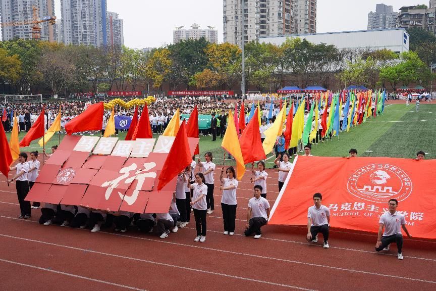 11日上午8时30分,学校运动会隆重开幕。学校党委书记曾维伦,党委副书记宋豫,党委常委、副校长陈运超、柏群、赵骅,党委常委、纪委书记、监察专员张海燕等校领导出席开幕式。学校校友会副会长、重庆港鑫集团董事长周勃应邀参加开幕式。2000余名师生代表齐聚一堂。开幕式由宋豫主持。