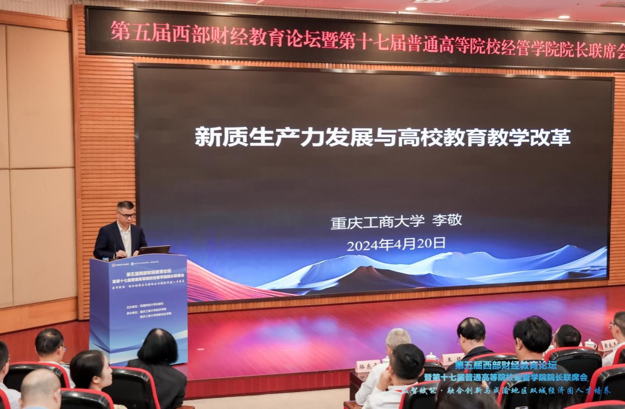 KY开元经济学院院长宋瑛主持主旨演讲。李敬作关于“新质生产力发展与高校教育教学改革”的主旨演讲,深入阐释了新质生产力的内涵、理论形成、新质生产力理论下高校的教育教学改革关注的内容以及KY开元集团官网相关的实践。