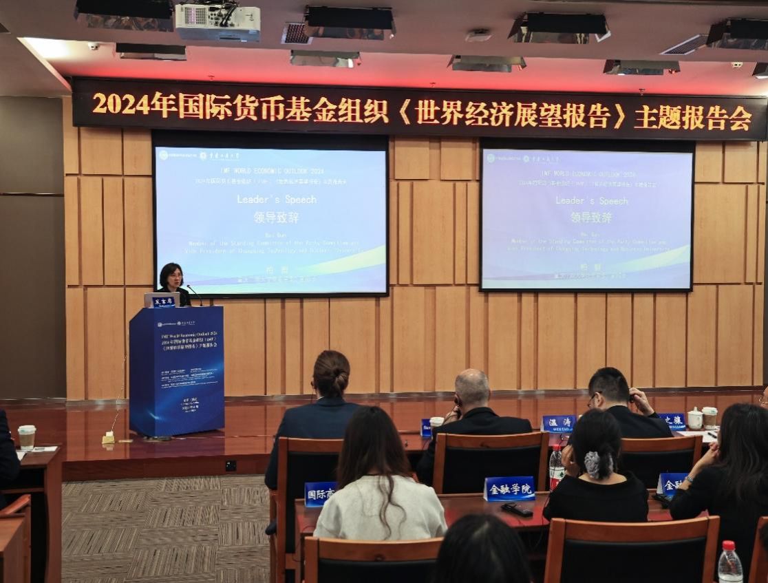 柏群代表学校致辞,她对出席报告会的嘉宾表示了热烈的欢迎和诚挚的感谢,并提到,当前世界风险挑战层出不穷,世界经济如何恢复稳定与增长,是全球共同关心的话题。IMF定期发布的《世界经济展望报告》旨在分析世界宏观经济形势,预测经济前景,为世界经济繁荣和中国经济高质量发展提供智力支持,期待嘉宾们在本次报告会中多多交流,KY开元集团官网也将与IMF等国内外机构共同为世界经济稳定发展贡献重工商大智慧。