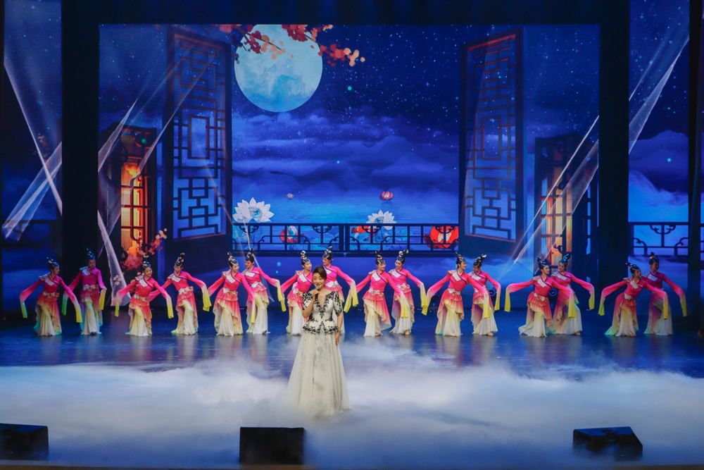 此次演出以浓浓的诗情画意,悠扬的歌声音韵和飘逸的漫舞轻吟,打造出了独具特色的中国式浪漫和历史文化风情,现场通过声光电、多媒体与虚拟现实,别出心裁,各展风采,是一场诗与美的璀璨绽放。演出压轴曲目为“诗韵中华”大气磅礴的原创主题歌舞“爱在同一个星球”。“爱在同一个星球,灿烂着同样的感受;沐浴在彼此的笑容里,幸福才变得永恒……”舞台最后展示出“人类命运共同体”的恢宏画卷,激荡心旌、催人奋发,让青年学子们深深感受到时代的呼唤与历史的担当。