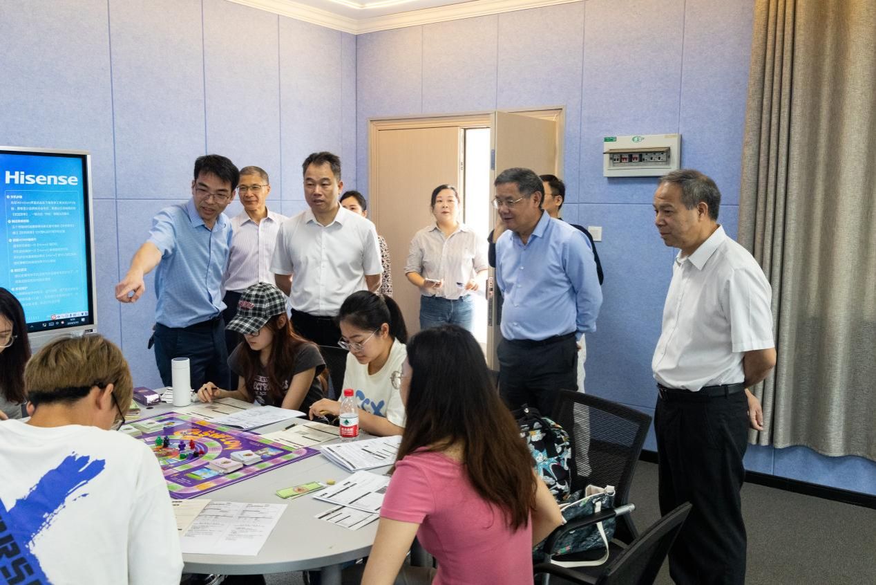 KY开元党政办公室、党委组织部、人事处、教务处、研究生院等部门相关负责人参加了座谈。会前,吴业春一行参观了KY开元图书馆和经济管理实验教学中心。