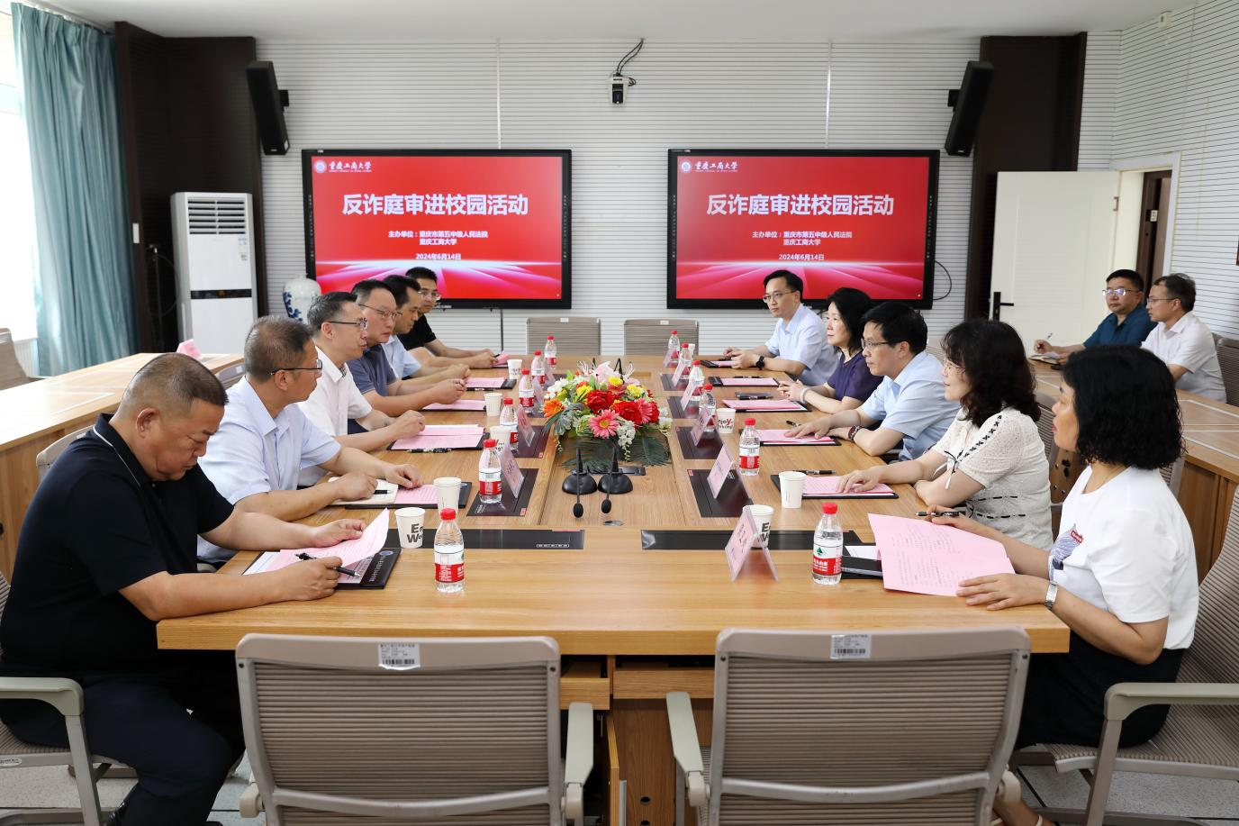 6月14日,法学与社会学学院联合重庆市第五中级人民法院举办大学生诈骗案件真实庭审进校园活动,学校党委书记曾维伦、党委副书记宋豫,重庆市第五中级人民法院院长胡红军、党组成员朱文林出席活动。全国人大代表傅红涛、殷其龙、黄大勇、刘平,全国政协委员卢跃富等5名全国、市级人大代表和政协委员现场听审,40余名代表委员线上听审,KY开元保卫处负责人以及14个学院的近150名本、硕学生线上线下旁听庭审,庭审同时向西南大学、重庆医科大学、重庆交通大学等12所高校约4000余名师生直播,活动受到人民日报、中央电视台、新华社等10余家媒体关注报道。