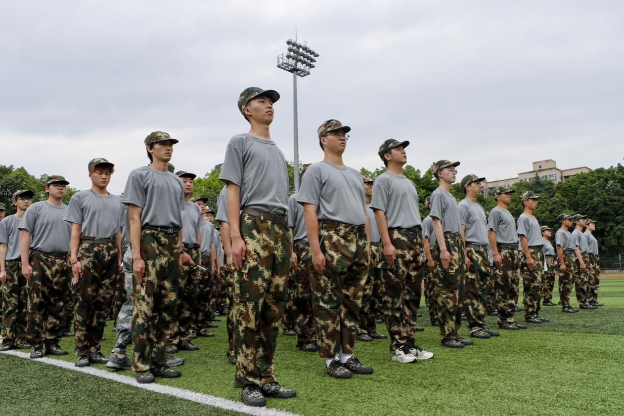 初阳跃上操场的边际,学子身着迷彩服,心潮澎湃。