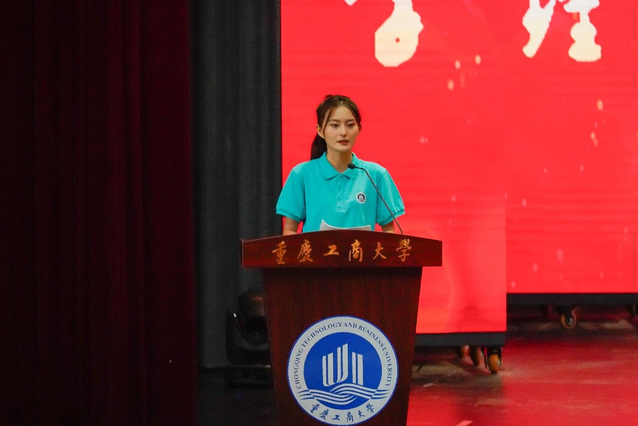工商管理学院2022级王紫妍同学作为学生代表发言。她向全体老师致以节日祝福。她表示,将在老师的关心和引领下,仰望星空,脚踏实地,勤学善思,求真笃行,努力到祖国需要的地方去建功立业。