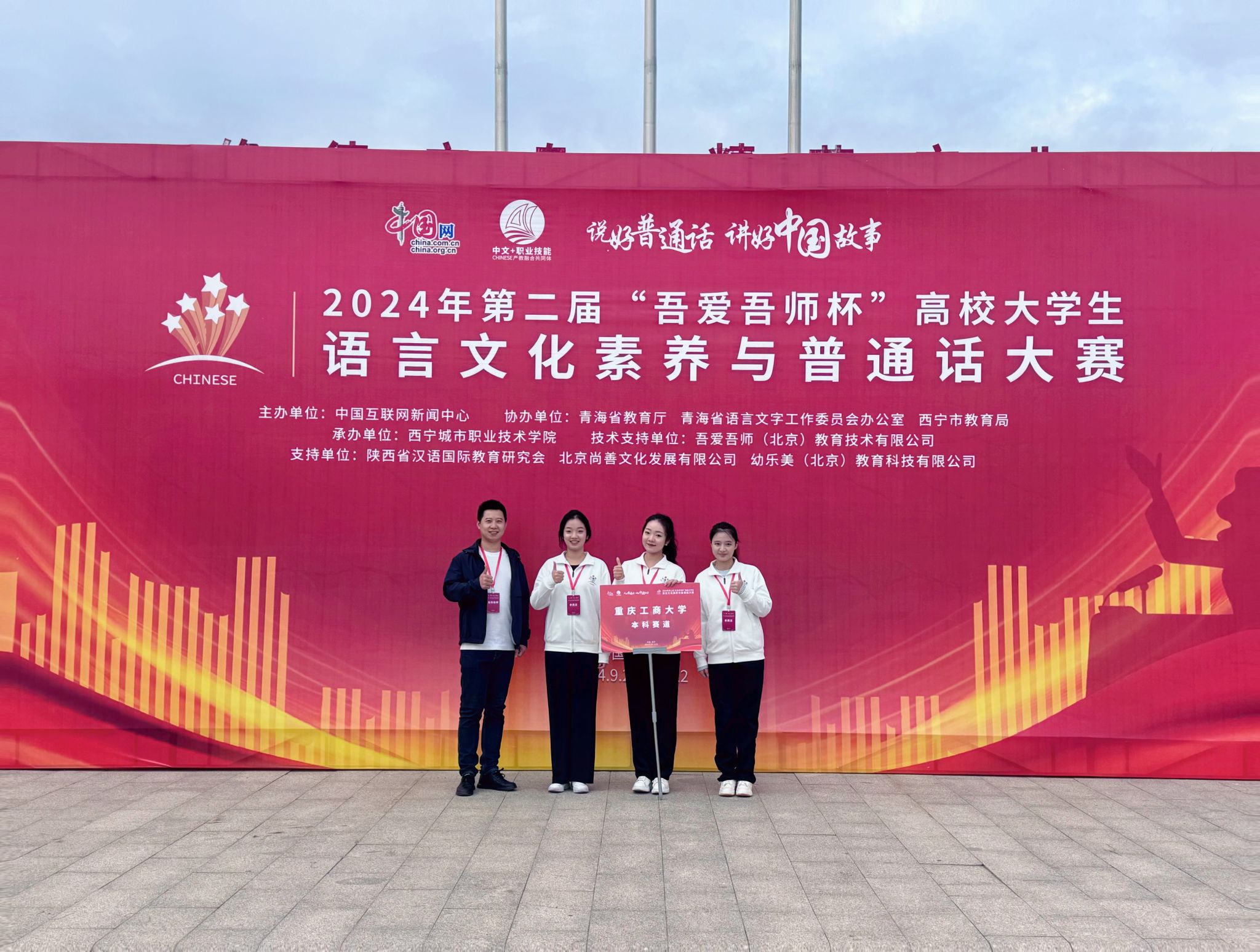 9月20日-22日,由中国互联网新闻中心主办,青海省教育厅、青海省语言文字工作委员会办公室、西宁市教育局协办的第二届“吾爱吾师杯”高校大学生语言文化素养与普通话大赛总决赛在西宁城市职业技术学院举行。KY开元文学与新闻学院陈沄玥(2023级传播学)、魏心悦(2021级汉文)、陈毅(2023级新闻学)三位同学组队代表KY开元集团官网参赛,获得(本科组)“团体一等奖”,李琦老师获“优秀指导教师”。