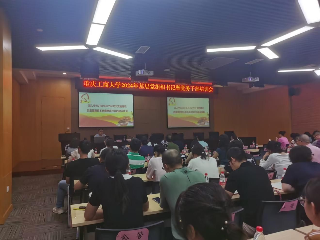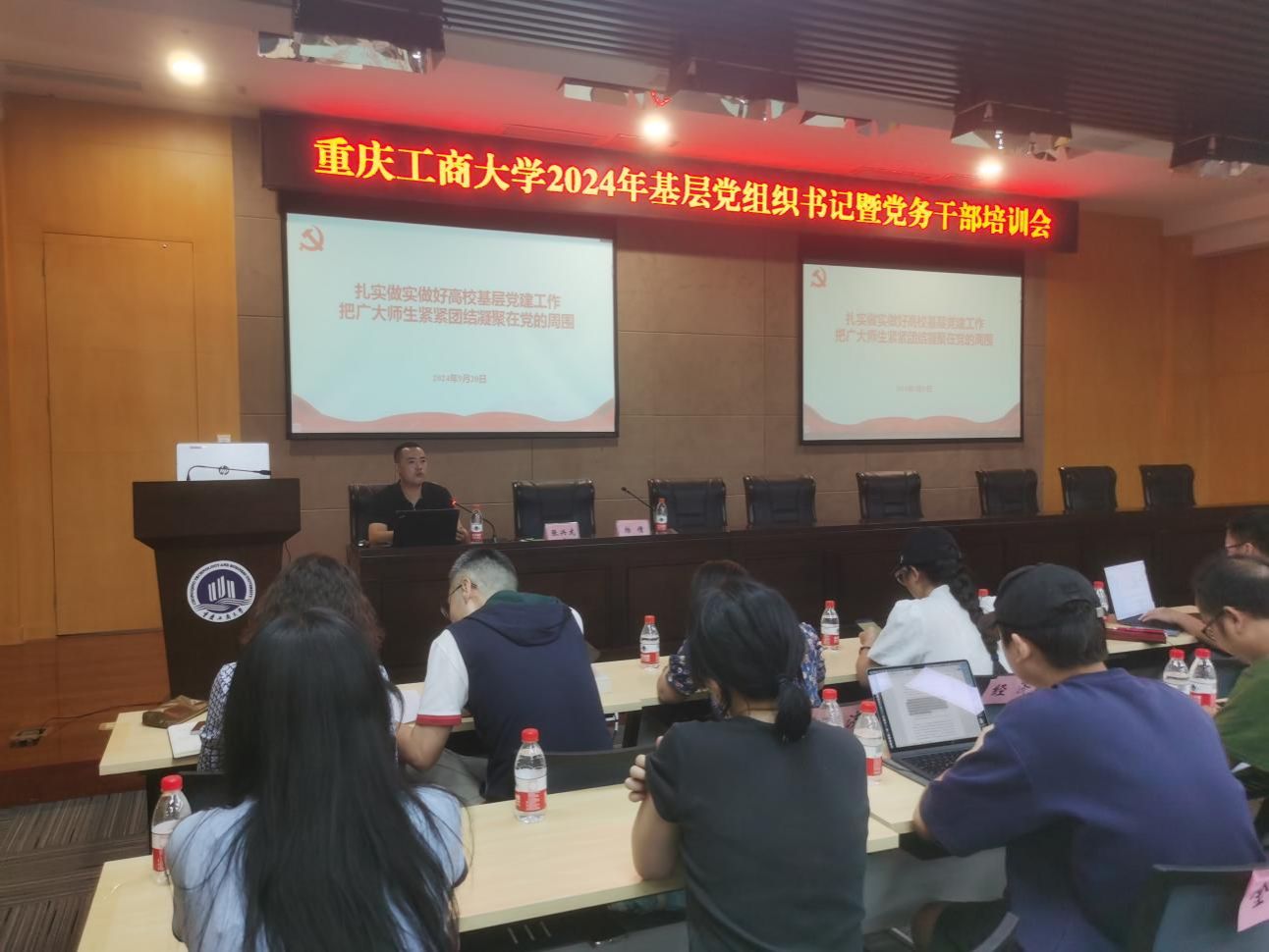 9月20日,学校2024年基层党组织书记暨党务干部培训会在图书馆会议中心多功能厅举行,机关党委书记、党委组织部副部长杨倩主持会议,来自全校各二级党组织的专职组织员、支部书记、党务干部等共计150余人参加培训。