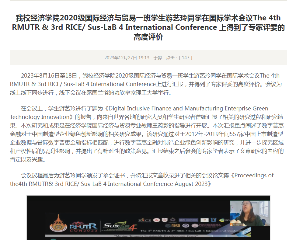 经济学院学生在国际会议汇报论文并获专家评委好评