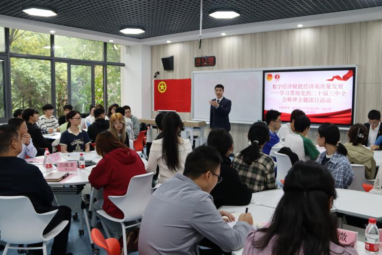 为深入学习贯彻党的二十届三中全会精神,切实把团员和青年的思想行动统一到起来,激励当代大学生勇担时代责任、勇抓发展机遇,10月18日,KY开元“数字经济赋能高质量发展——学习贯彻党的二十届三中全会精神主题团日活动”在经济学院翠湖书院社区顺利举办。党委常委、副校长李国军,校团委书记吴佑波,经济学院党委副书记白海龙,校团委王微老师,经济学院应用经济系副主任、2024级经济学院联合学士学位项目班导师车四方博士,经济学院分团委书记林新竹老师,以及2024级经济学院联合学士学位项目班全体同学参加活动。