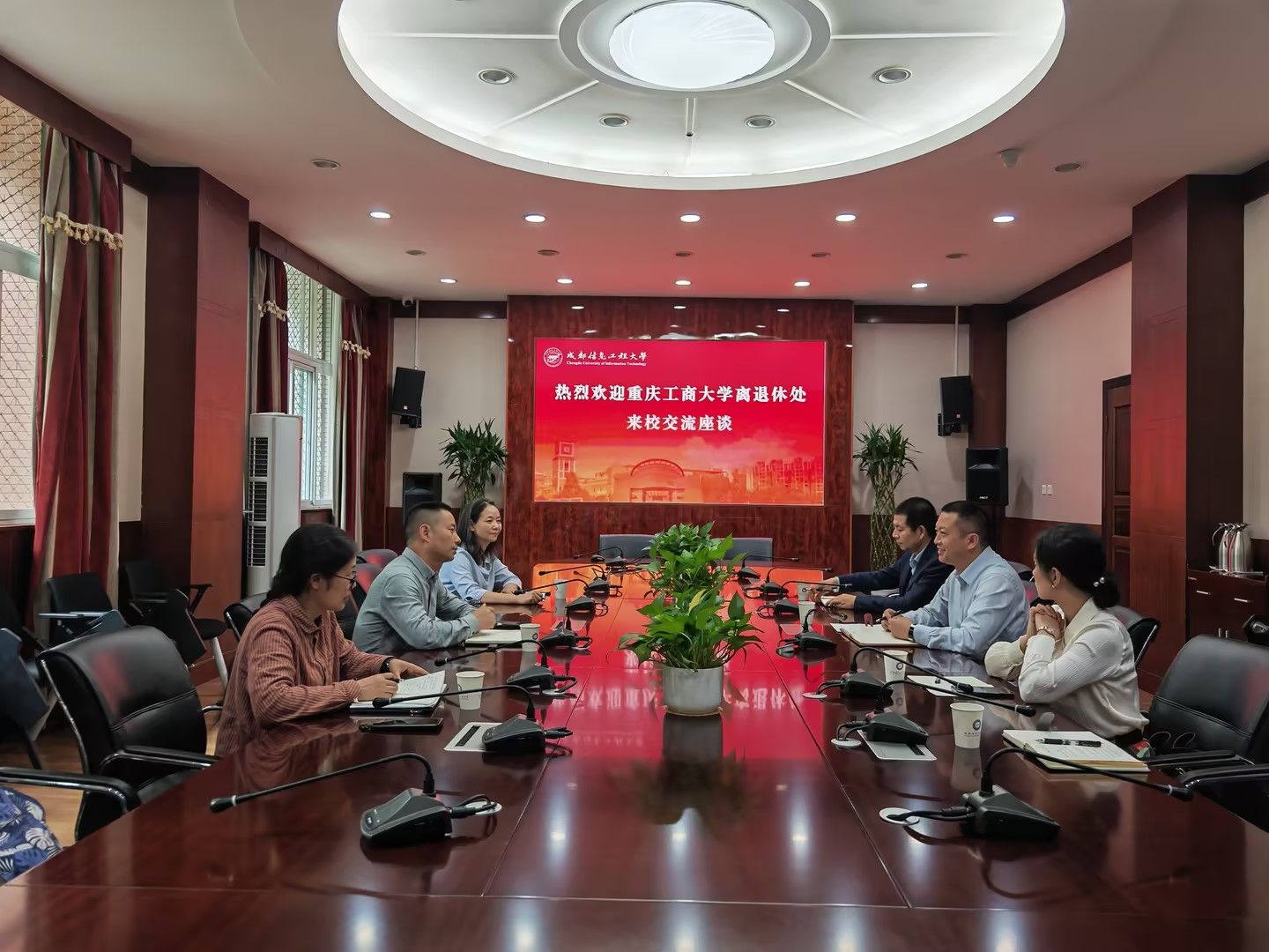 在蓉期间,离退休工作部还前往成都信息工程大学就新时代离退休工作的热点难点问题进行了调研,该校副校长陈权亮莅临指导。