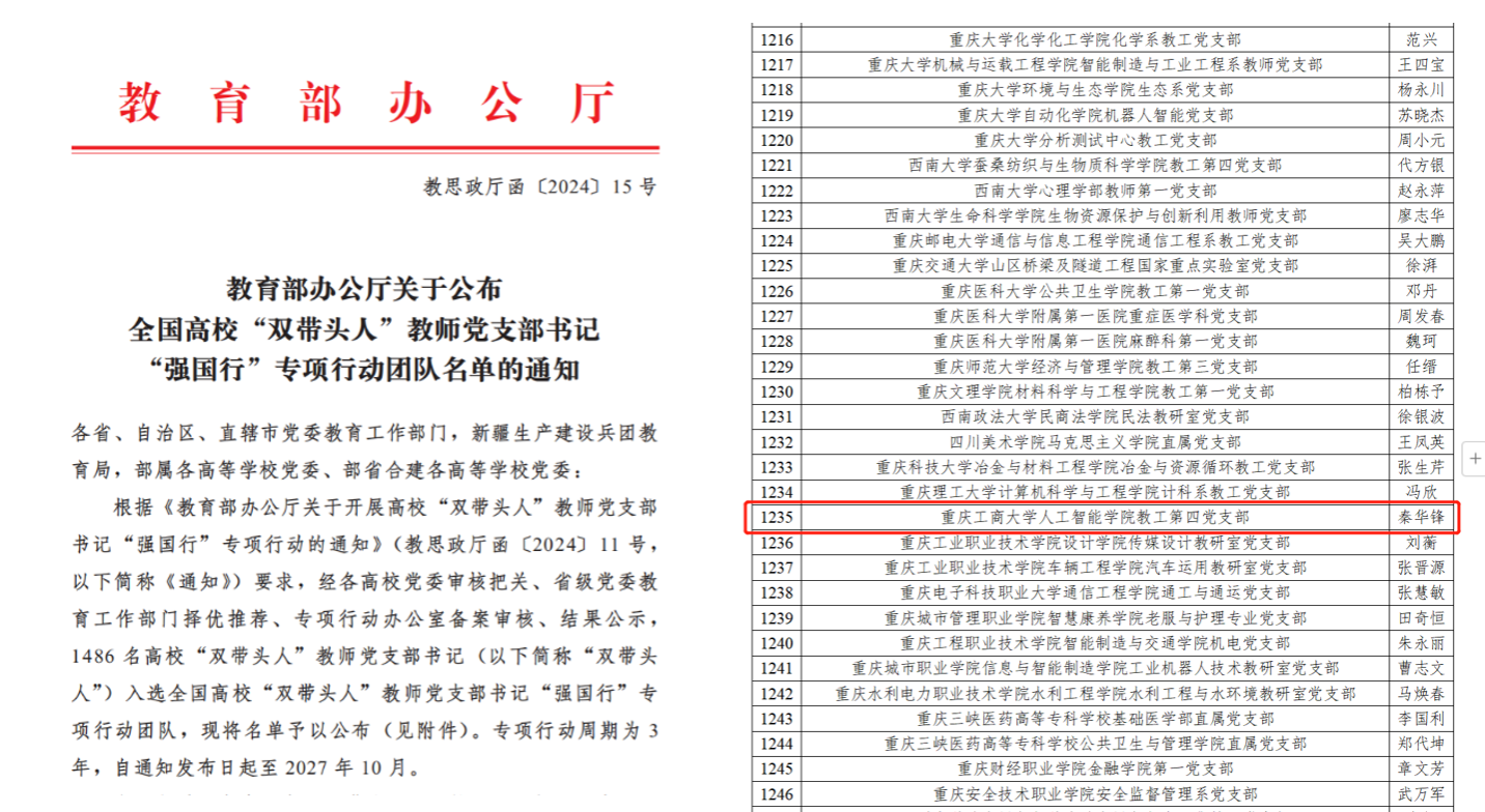 近日,教育部思政司印发了《关于公布全国高校“双带头人”教师党支部书记“强国行”专项行动团队名单的通知》,KY开元国合基地党支部(人工智能学院教工第四党支部)入选。