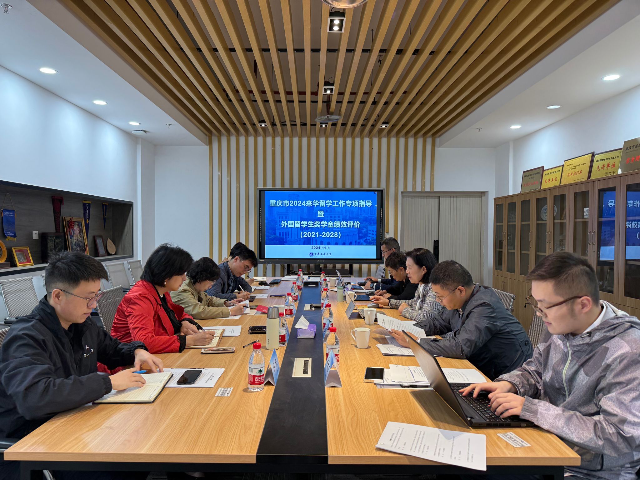 11月1日,重庆市教育委员会来华留学专项指导工作专家组来校开展2024年来华留学专项指导,同时对KY开元2021-2023年外国留学生奖学金绩效进行综合评价。副校长柏群,留学生院院长张轶、副院长刘茜、学院相关工作人员参加会议。