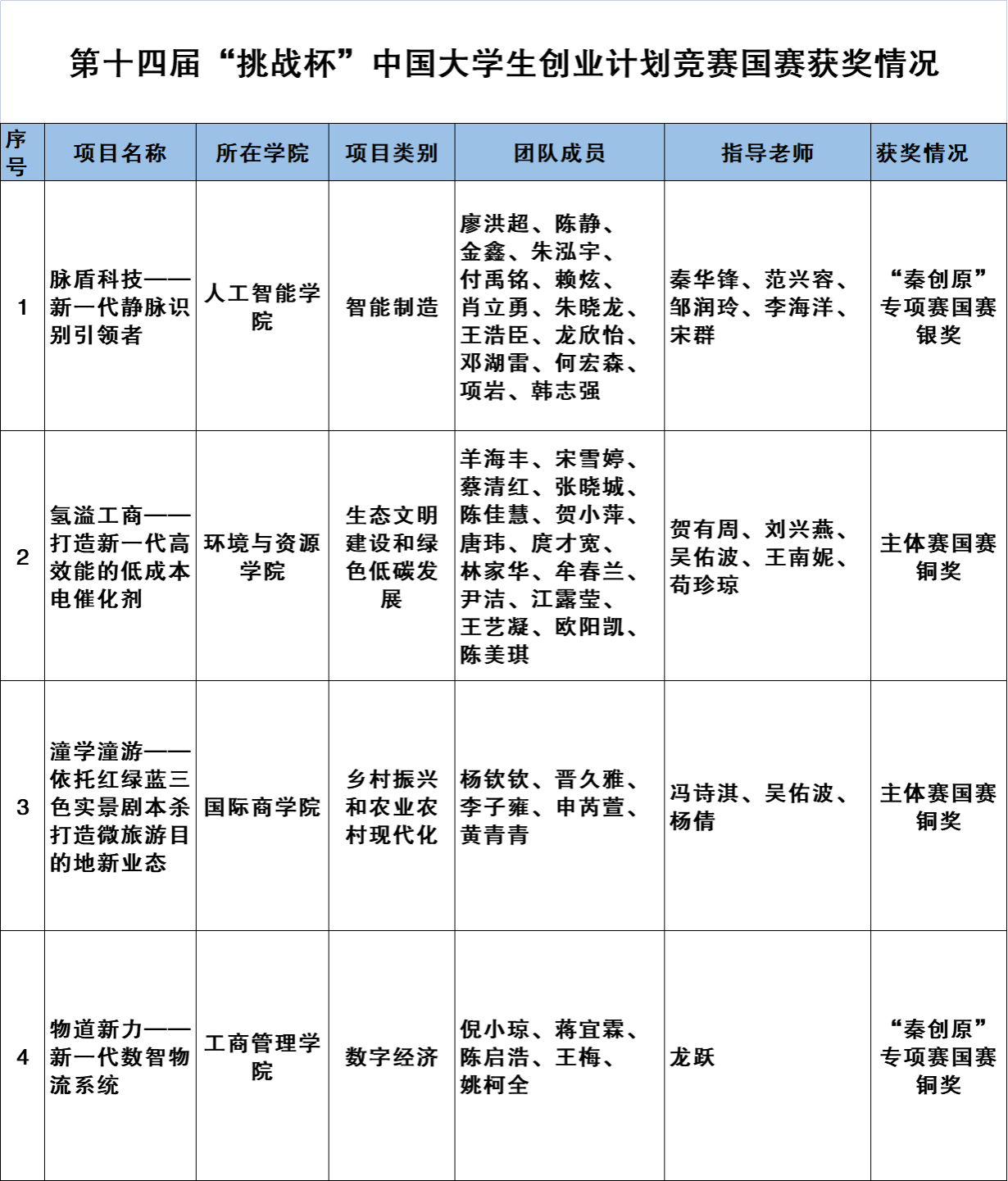 10月29日-11月2日,由共青团中央、教育部、人力资源社会保障部、中国科协、全国学联、陕西省人民政府联合主办,由西安交通大学、共青团陕西省委承办的第十四届“挑战杯”中国大学生创业计划竞赛在西安交通大学(兴庆校区)举行。经过层层角逐,KY开元参赛项目获国赛银奖1项、铜奖3项。人工智能学院项目《脉盾科技-新一代静脉识别引领者》获“秦创原”创新挑战专项赛国赛银奖,环境与资源学院项目《氢溢工商一打造新一代高效能的低成本电催化剂》、国际商学院项目《潼学潼游—依托红绿蓝三色实景剧本杀打造微旅游目的地新业态》获主体赛国赛铜奖,工商管理学院项目《物道新力——新一代数智物流系统》获“秦创原”创新挑战专项赛国赛铜奖。