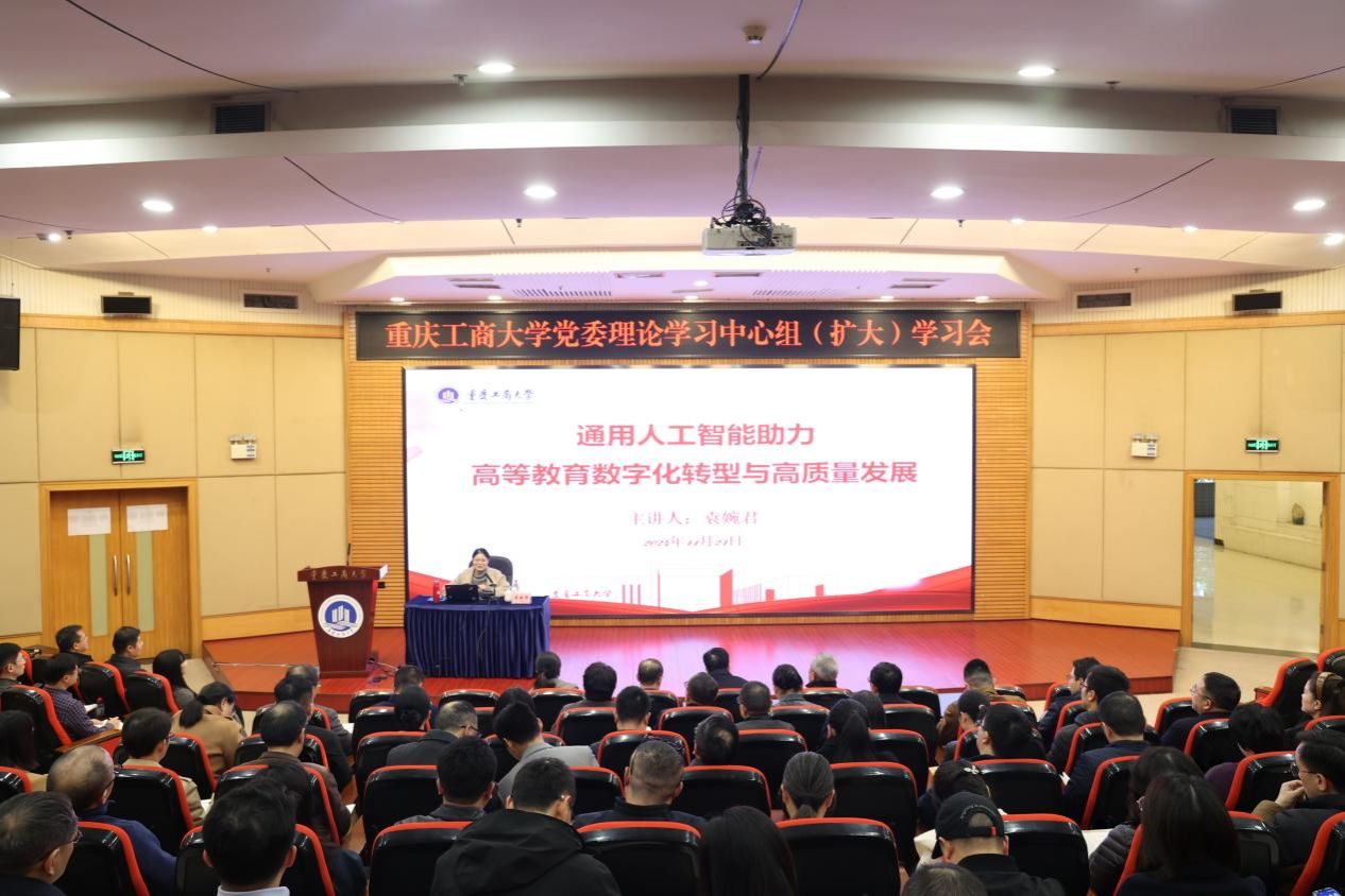 曾维伦要求,全校上下要以今天的讲座为契机,充分认识高校实施数字化转型的重要性,积极应变、主动求变,全面推进人才培养全过程、全要素数字化转型,积极探索人才培养新路径,办好人民满意的教育,为建设教育强国贡献重工商大力量。