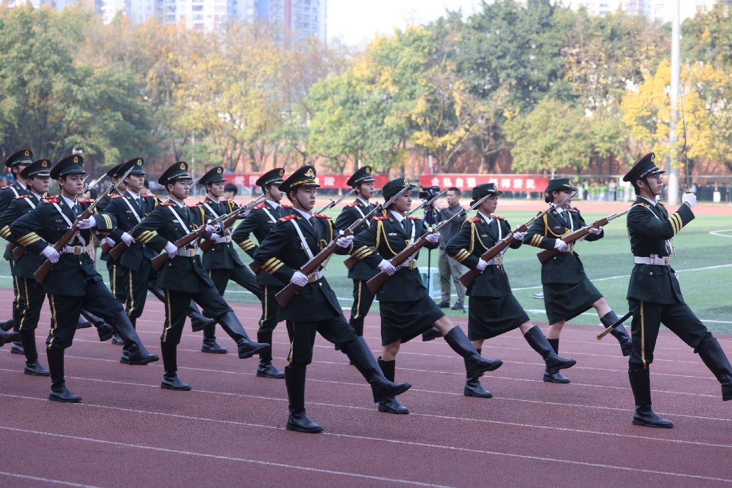11日下午,本届田径运动会闭幕式在南岸校区南区田径运动场举行。学校党委常委、副校长李国军、张波、田双全,党委常委、组织部部长莫征出席闭幕式并为获奖团队颁奖。