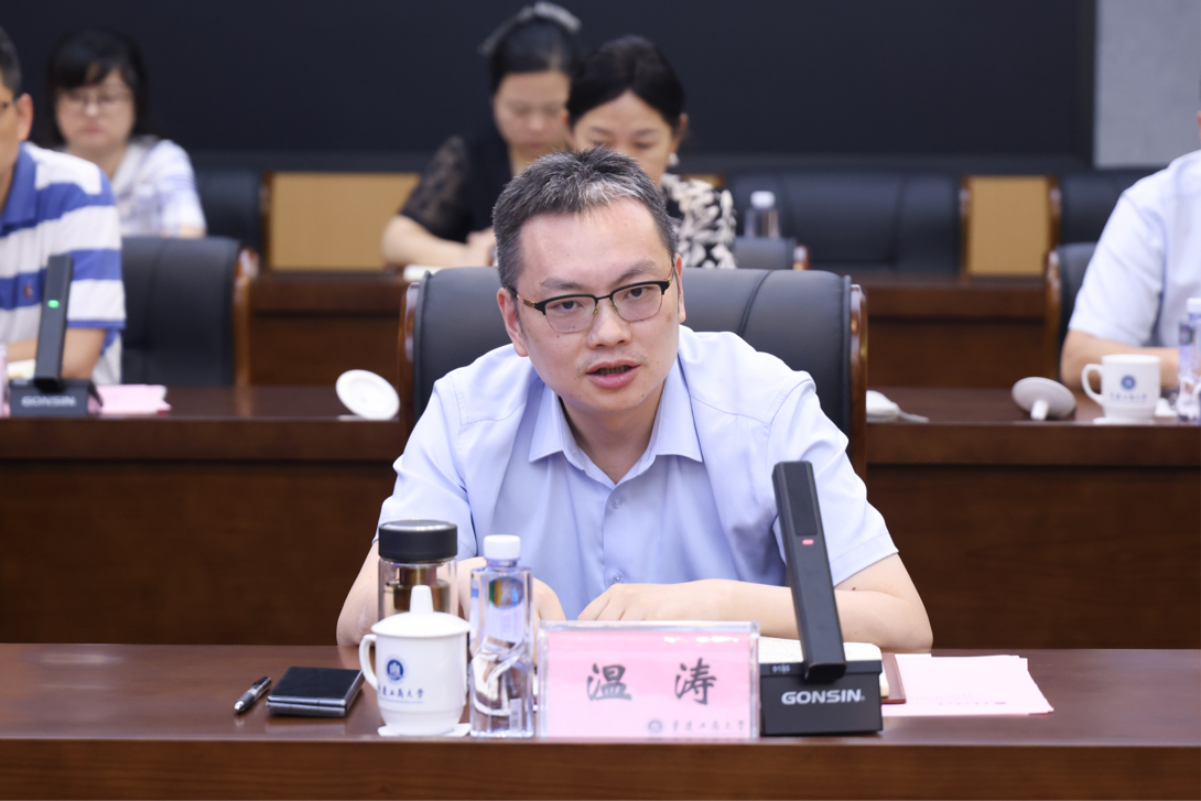 温涛代表学校对于海峰一行到校调研交流工作表示热烈欢迎,对广东财经大学一直以来给予KY开元的支持表示衷心感谢。温涛从学校的学科建设、人才培养、有组织科研、高层次人才引育、科研创新等方面介绍了学校的基本情况,并希望双方能够加强合作,为同类院校的创新发展贡献力量,协同服务好国家重大战略需求和地方经济社会发展。
