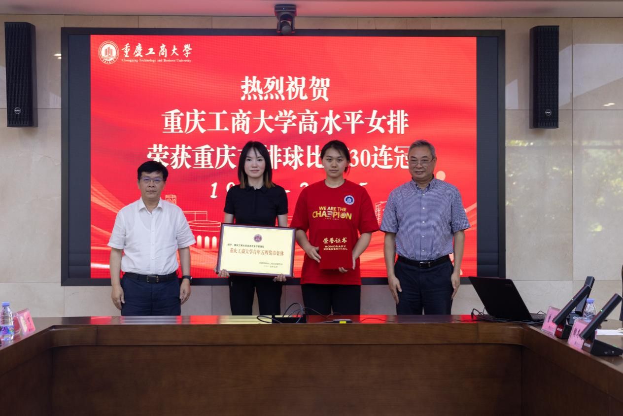曾维伦在讲话中首先向为女排荣誉倾注心血的老教练、老队员们致以崇高敬意,向续写传奇的现役队员们表示热烈祝贺。他指出,学校女排勇夺重庆市排球比赛“三十连冠”的精彩表现,令全校师生员工和广大校友深受鼓舞,向全社会展示了重工商大的女排名片,为学校加快建设特色高水平大学贡献了力量。曾维伦强调,学校女排“三十连冠”是学校深入贯彻落实党的教育方针的具体体现。他希望体育学院和相关部门以此为契机,要认真总结凝练,系统梳理女排团队在人才培养、办学特色和教育教学质量提升中的突出贡献,深刻提炼其蕴含的拼搏精神、团队意识和卓越追求,为推动学校高质量发展提供强大精神动力;要加强宣传推介,大力弘扬女排精神,讲好女排故事,将学校女排精神与立德树人的教育理念深度融合,通过多维度、立体化的宣传,生动展现女排风采与校园文化的交相辉映,让赛场上的铿锵玫瑰成为彰显学校精神的一张亮丽名片;要做好支持保障,重点做好女排队伍的人才培养体系建设和训练后勤保障工作,以专业化、精细化的服务支撑团队发展,续写女排辉煌。