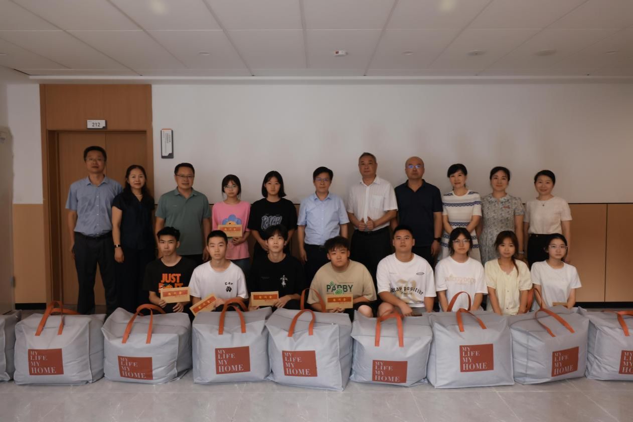曾维伦、温涛一行分别向茶园校区、兰花湖片区和南岸校区的新生代表赠送了慰问品和慰问金。