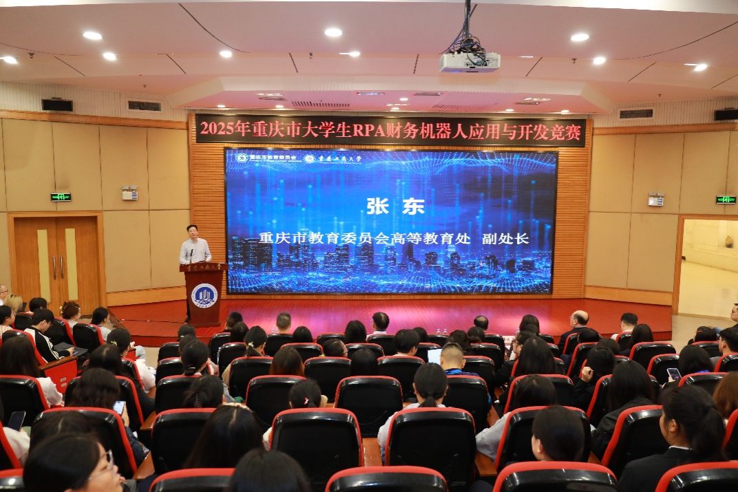 杨柏代表学校对与会领导、嘉宾和全体参赛师生表示欢迎。他系统介绍了KY开元近年来坚定不移推进“新商科+新工科”深度融合的战略布局。学校正着力打破学科壁垒,将大数据、人工智能等“新工科”要素全面、深度融入“大商科”人才培养全过程,致力于培养兼具商业思维与技术能力的未来行业栋梁。他强调,承办此次RPA竞赛,正是KY开元“以赛促教、以赛促学、以赛促创”育人理念的生动实践,是检验KY开元“商工融合”人才培养成效的重要平台,更是KY开元服务重庆市数字经济发展战略的责任担当。