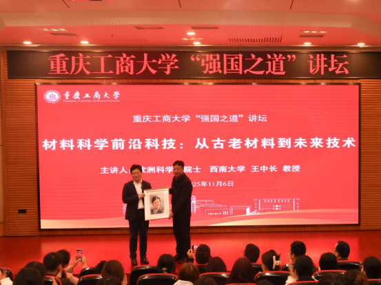 本次讲坛特邀欧洲科学院院士、西南大学材料与能源学院院长王中长教授担任主讲嘉宾。王院士以《材料科学前沿科技:从古老材料到未来技术》为题,重点阐述了材料科学与技术的发展历程及其在现代科技中的重要地位。他详细介绍了当前面临的关键挑战,包括第三代半导体晶圆制备、感存算一体芯片设计、极端环境传感器等,并指出材料科学正朝着高性能化、多功能化、智能化和可持续化的方向进行跨学科融合发展,使师生们对材料科学的发展有了更为深刻的理解。