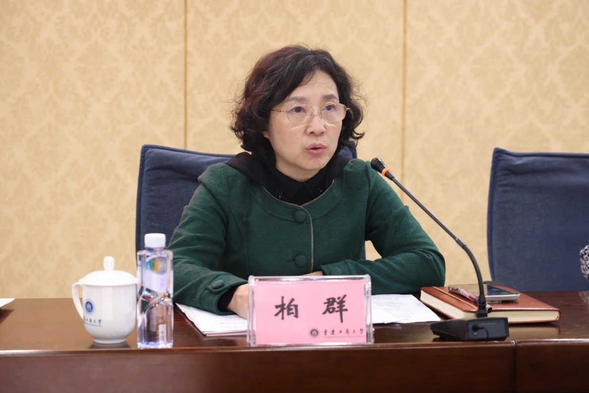 会上, 柏群首先传达了习近平总书记关于教育对外开放和打造重庆内陆开放综合枢纽的重要讲话精神。柏群指出,习近平总书记的重要讲话精神为新时代教育对外开放工作指明了前进方向,是做好学校外事工作的根本遵循和行动指南。各单位要深刻领会精神实质,准确把握新时代外事工作的政治方向和实践路径。