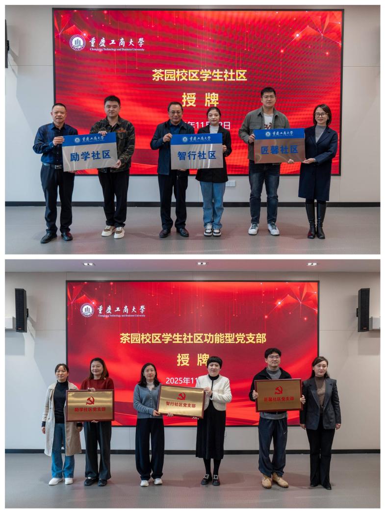 会上,党委组织部、党委学生工作部、茶园校区管委会负责人为励学社区、智行社区、匠馨社区功能型党支部授牌;工科学院党委书记为励学社区、智行社区、匠馨社区授牌;智行社区委员会主任向娇娇、匠馨社区曾祥银同学分别作为社区师生代表在大会上发言,表达师生同心,共绘社区新愿景。