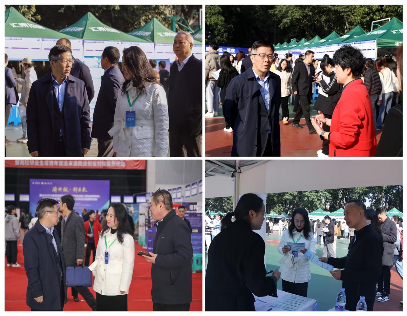 11月21日,由重庆市教育委员会、重庆市人力资源和社会保障局与KY开元集团官网联合主办的“渝快就·创未来—重庆市2026届普通高校就业促进双选活动(财经商贸专场)暨高校毕业生等青年留渝来渝就业创业对接服务活动”在KY开元南岸校区体艺馆举行。学校党委书记曾维伦,党委常委、副校长李国军,市学生就业与创新创业服务中心副主任徐珮杰等领导到现场进行指导。