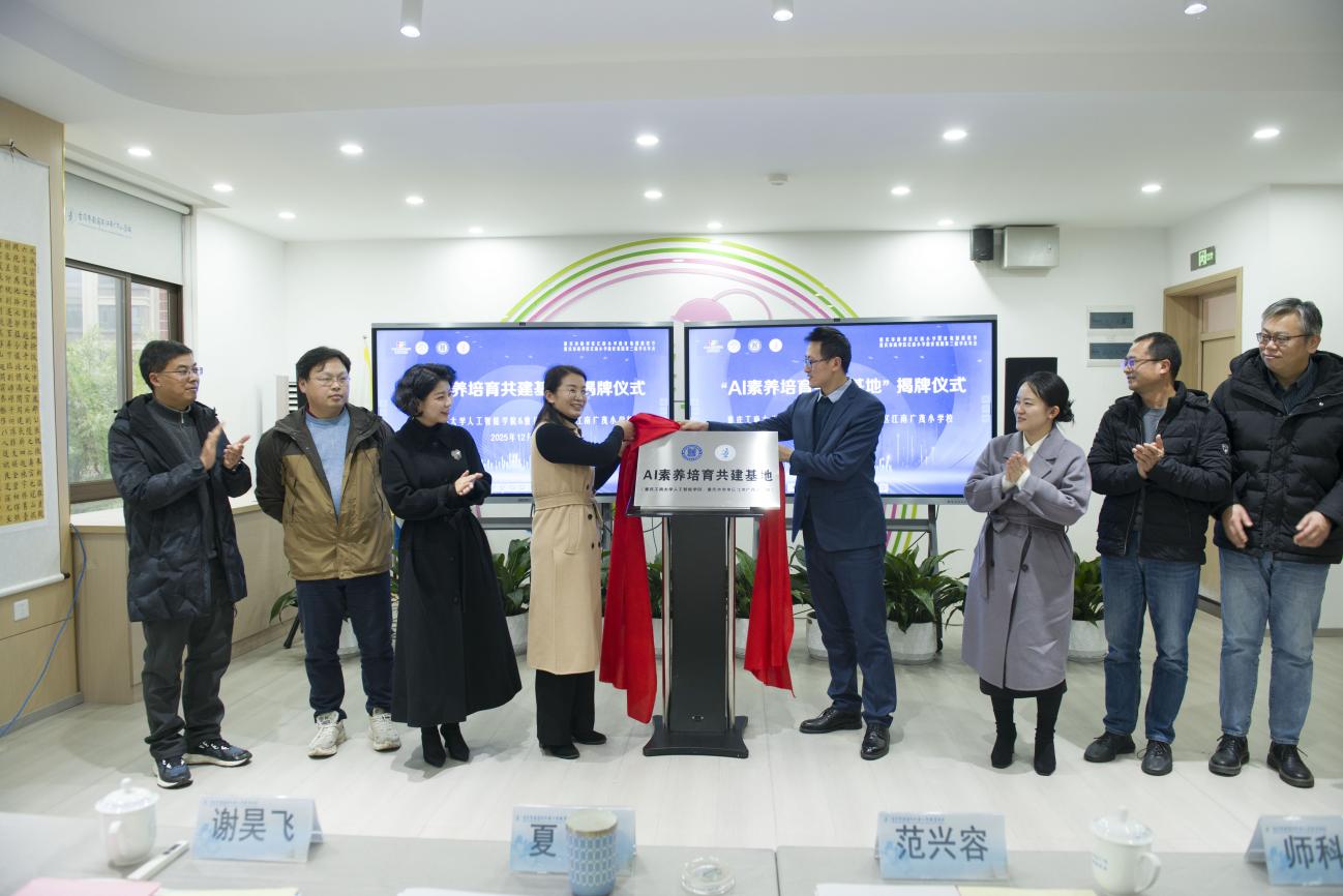 2025年12月3日下午,人工智能学院与南岸区江南广茂小学联合举办“AI素养培育共建基地”揭牌仪式暨家长开放日活动。南岸区委教育工委委员、区教委副主任夏爽,南岸区江南广茂小学党委书记李维玲,人工智能学院副院长范兴容,综合办主任周元,计算机系杨艺教授,高校相关领域专家、双方师生及家长代表出席会议,共同见证高校与基础教育协同育人的重要时刻。