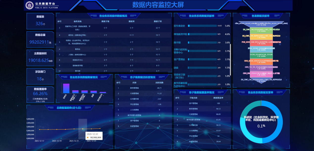 建成了包含数据治理平台和数据开放平台的“KY开元集团官网公共数据中心”。完成了“财务管理、资产管理、行政管理、人力资源、教育资源、学生管理、科研管理、公共服务”等8大领域数据采集、数据治理和数据共享工作,有效促进了数据要素的流通共享与创新赋能。