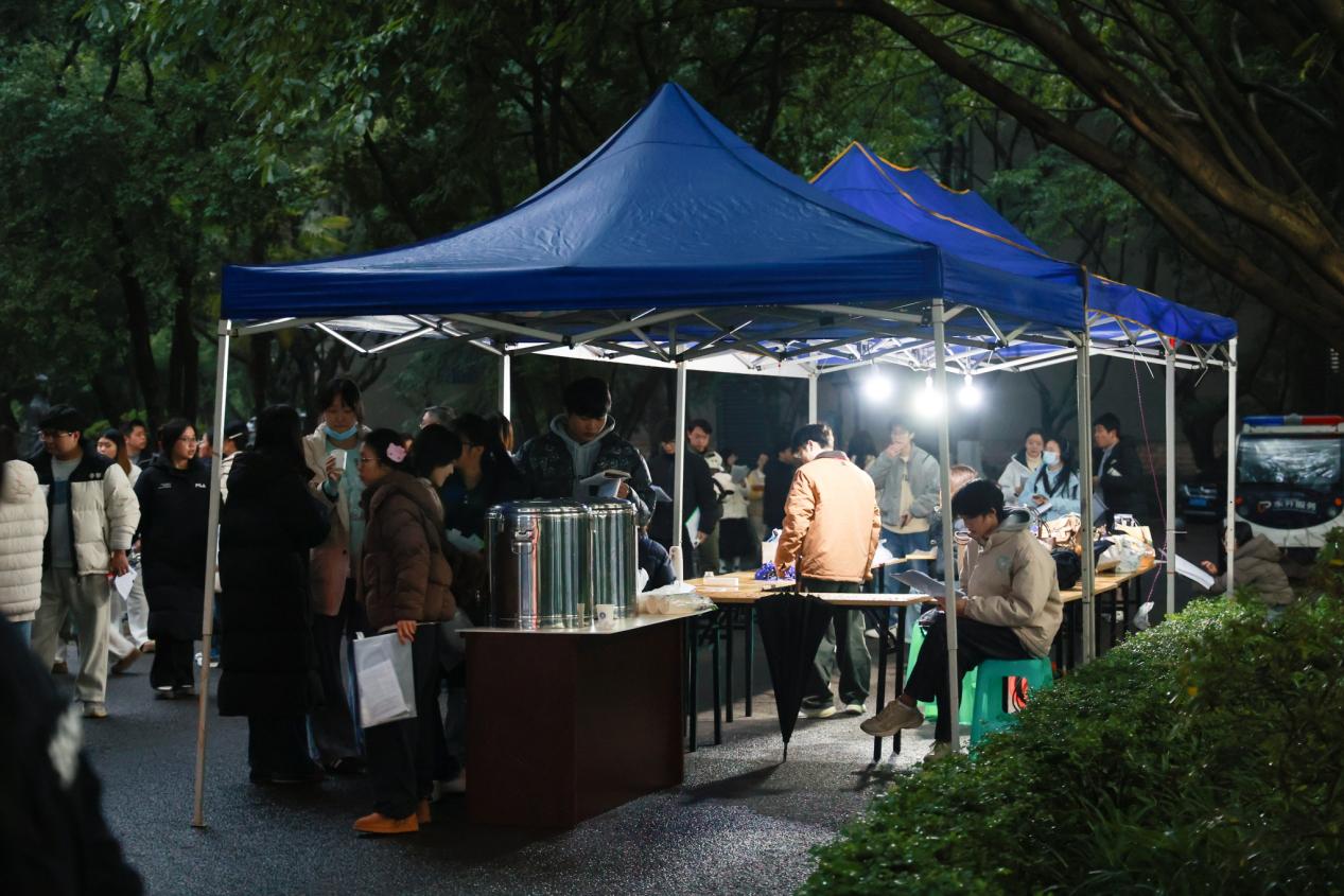 针对考试期间低温天气,学校在候考区贴心准备了热姜茶,为考生驱散寒意、舒缓压力,以暖心举措服务考生。